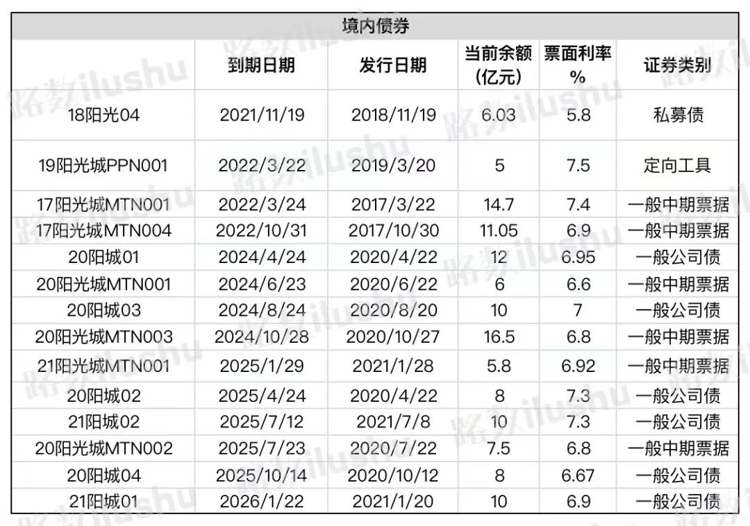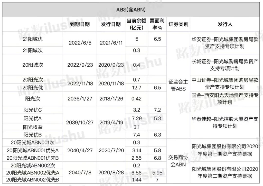 其中有:一只由“中山證券-陽光城集團(tuán)購房尾款資產(chǎn)支持專項(xiàng)計(jì)劃”發(fā)起的ABS產(chǎn)品“20陽光優(yōu)”,回售到期。一筆為美元債“陽光城10% N20230212“,也是回售到期。另外還有一筆境內(nèi)債“18陽光04”和一筆供應(yīng)鏈。