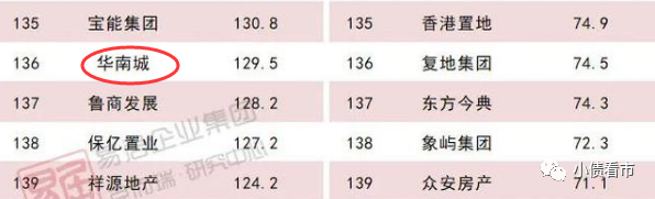 據(jù)克而瑞數(shù)據(jù),2021年華南城以129.5億操盤金額位居房企第136位;以166.1萬平方米操盤面積排名第84位,屬于小型房企。