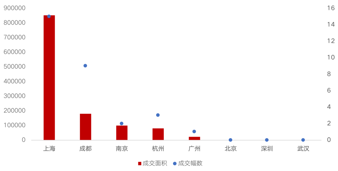 新年伊始,重點城市租賃用地市場成交火熱,上海、廣州、杭州、南京、成都第一季度共成交30幅純租賃或者具有租賃屬性地塊,總建面總計達123.4萬平方米。其中上海成交量居于首位,2021年1-2月先后集中出讓15幅租賃住房地塊,成交面積約為85.2萬方,占八城總成交面積的70%。