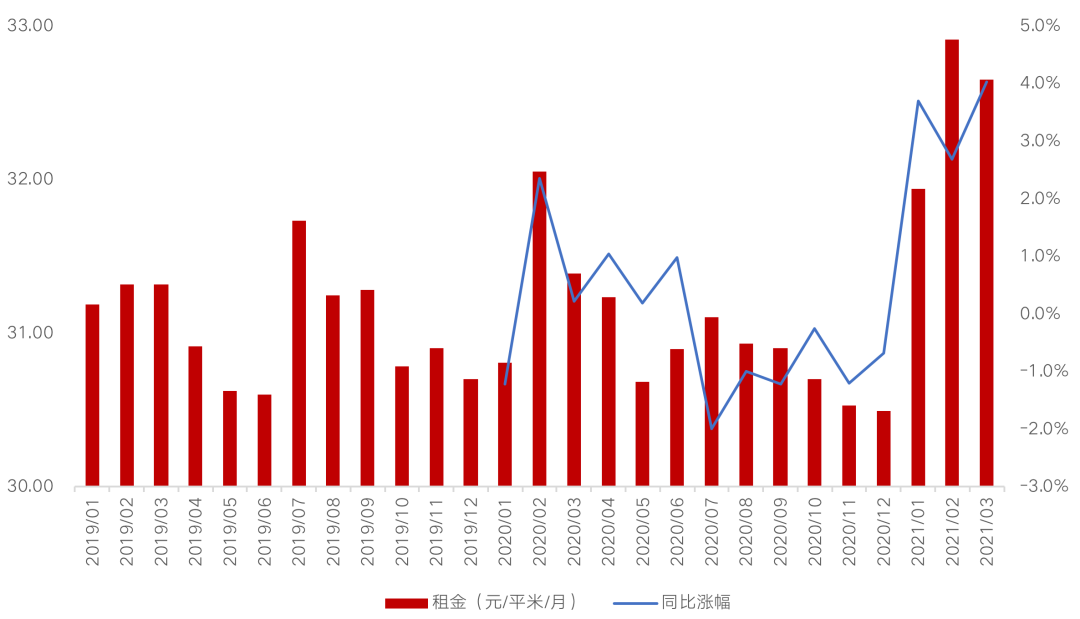 這使得春節期間租賃房源較為緊缺,1-2月租金較去年年底提升顯著,1月環比提高4.76%,2月環比上升3.04%。到了3月,租金稍有下降,但同比去年仍有所上漲,增幅4%。
