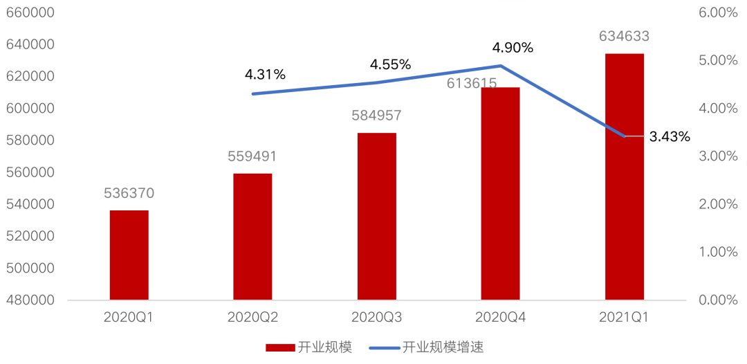2021年一季度,集中式長租公寓規模增速放緩。TOP20集中式長租公寓新開業規模63.46萬間,同比增長18.32%,環比增長3.43%。2020年,我國租賃行業經歷了內外生態環境的變化,大浪淘沙,重新洗牌,各方參與者回歸理性,以審慎的態度面對企業自身與行業整體發展。因而,租賃企業整體開業增速放緩,轉向聚焦提升資產價值與精細化運營服務。