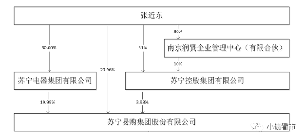 從股權(quán)結(jié)構(gòu)上看,實控人張近東直接持有蘇寧易購20.96%股份,除此之外他還通過蘇寧集團(tuán)和蘇寧控股對蘇寧易購間接持股,合計持有33.3%股份。