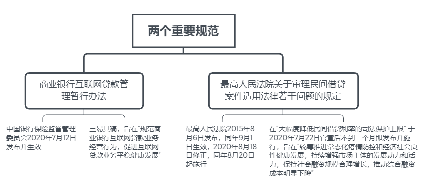 庚子夏秋之交,信貸行業接連迎來重要規范,一為《商業銀行互聯網貸款管理暫行辦法》(下稱“暫行辦法”),二為《最高人民法院關于修改<關于審理民間借貸案件適用法律若干問題的規定>的決定》(下稱“8.20司法解釋”)。
