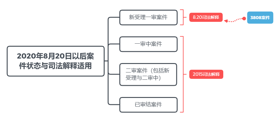 有觀點表示,8.20司法解釋第三十二條第二款規定:“借貸行為發生在2019年8月20日以前的,可參考原告起訴時一年期貸款市場報價利率四倍確定受保護的利率上限”,該款似乎可以作為3808案件作出“參照”判決的依據。