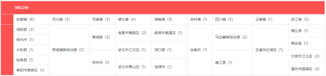 1. 審理法院所屬地區包括9省22地(市、縣、區)。