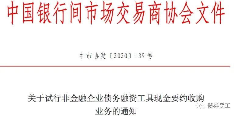 中國銀行間市場交易商協會(以下簡稱“交易商協會”)于2020年11月2日發布《關于試行非金融企業債務融資工具現金要約收購業務》,其中最重要的規定是可以對未到期的債務融資工具進行進行市場化收購回售。根據通知的要求,“現金要約收購是指發行人向特定債務融資工具(以下稱“標的債券”)的全體持有人發出要約,以現金方式收購全部或部分流通中標的債券并注銷的行為”。在這里需要明確的是,要約是面向全體債券持有人,但是收購結果是可以收購全部或者部分債券,并不強制要求對全部債券進行收購。而且更重要的是,《通知》中規定,收購凈價可以低于每百元面值標的債券剩余本金。