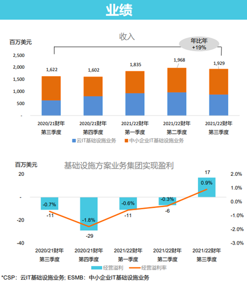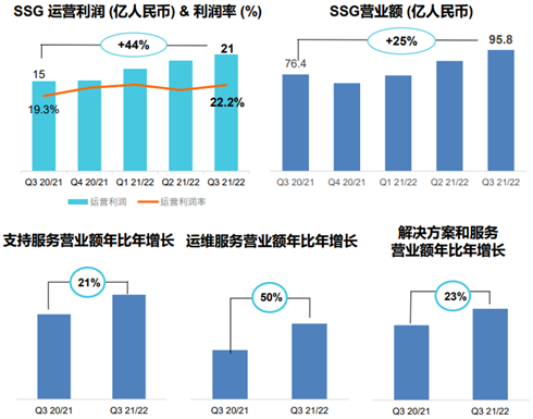 第三財季,IDG實現(xiàn)收入1126億人民幣,同比增長16%;實現(xiàn)運營利潤86.4億人民幣,同比增長21%。伴隨著政策的東風,聯(lián)想的轉(zhuǎn)型迎來全新面貌,IDG穩(wěn)中有升作為“中軍”,而ISG和SSG則充當轉(zhuǎn)型期的“先鋒”,整個集團的超預期業(yè)績也證明了聯(lián)想轉(zhuǎn)型的成功。2021/2022財年第三季度業(yè)績會上,童夫堯介紹到,聯(lián)想幾乎所有的員工都在從傳統(tǒng)的硬件銷售進一步升級,向客戶推薦聯(lián)想的高價值產(chǎn)品。除了服務器之外,還有存儲、軟件定義、網(wǎng)絡、解決方案、增值服務等。