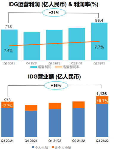 聯(lián)想集團(00992.HK)于2022年2月23日發(fā)布2021/2022財年第三財季報告。業(yè)績繼續(xù)創(chuàng)歷史新高,大超市場預期。2021年第四季度,聯(lián)想單季營業(yè)收入和凈利潤雙雙創(chuàng)歷史新高,所有主營業(yè)務板塊均實現(xiàn)同比兩位數(shù)增長。尤其是專注智能基礎設施的ISG(Infrastructure Solutions Group,基礎設施方案業(yè)務集團),首次實現(xiàn)單季盈利。在聯(lián)想集團高級副總裁、ISG中國區(qū)總裁童夫堯看來,“這是聯(lián)想從傳統(tǒng)PC業(yè)務走向多元化的一個非常重要的里程碑”。藉此穩(wěn)健的財務業(yè)績,2022年2月20日,恒生指數(shù)有限公司宣布,聯(lián)想集團重新被納入香港恒生指數(shù)成份股,3月7日起生效。這意味著,時隔三年多,聯(lián)想回歸港交所的“藍籌股”隊列,再次成為全球資產(chǎn)配置的重點標的。作為代表指數(shù),恒指每次變動都會引發(fā)資金的跟隨。此次擴容只加入了兩家公司,聯(lián)想集團是其中之一,這標志著資本市場明確認可聯(lián)想近年來業(yè)績的“含金量”。借由IDG(Intelligent Devices Group,智能設備業(yè)務集團)業(yè)務的深耕與積累,聯(lián)想持續(xù)推進ISG和SSG(Solutions& Services Group,方案服務業(yè)務集團)新業(yè)務,兩年來業(yè)務一直高速增長,不斷帶給投資者驚喜。