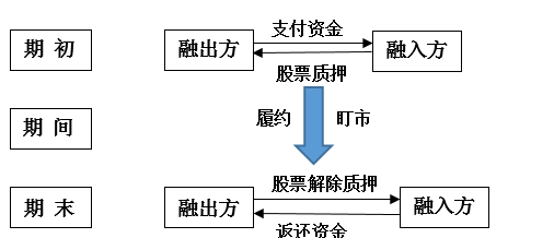股票質(zhì)押式回購交易業(yè)務包括初始交易和購回交易兩次交易和兩次結算,業(yè)務模式為: