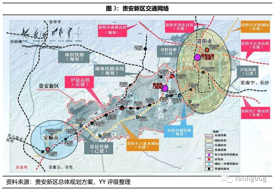 此外,貴陽市域快鐵西南環線也在建設當中,共設置15個站點,經過貴安新區直管區的有5個站點,分別為大學城、黨武、湖潮東、月亮湖、貴安,建成后從貴安新區經快鐵西南換線到貴陽龍洞堡國際機場只需大約20分鐘。