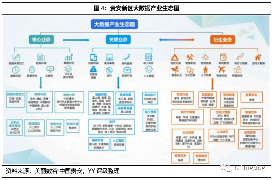 貴安新區的產業相對單一,主要靠大數據為核心,支撐起產業鏈條。但縱觀大數據產業,從數據采集加工、數據存儲管理,到數據計算分析、數據可視化,業務繁復,對人才技術要求高。橫向觀察,大數據產業可以發展許多衍生業務,和交通、制造業、教育、醫療等領域相結合,實現協同效應。從貴安新區招商引資的企業性質來看,核心業務是做數據托管服務,以大數據產業鏈上最基礎的一環為中心作為起點,發展空間上限較大,可形成產業聚集,但要真正實現衍生業態的智能場景應用,結合貴安新區和整個貴州地區的經濟水平來看,非常不容易。