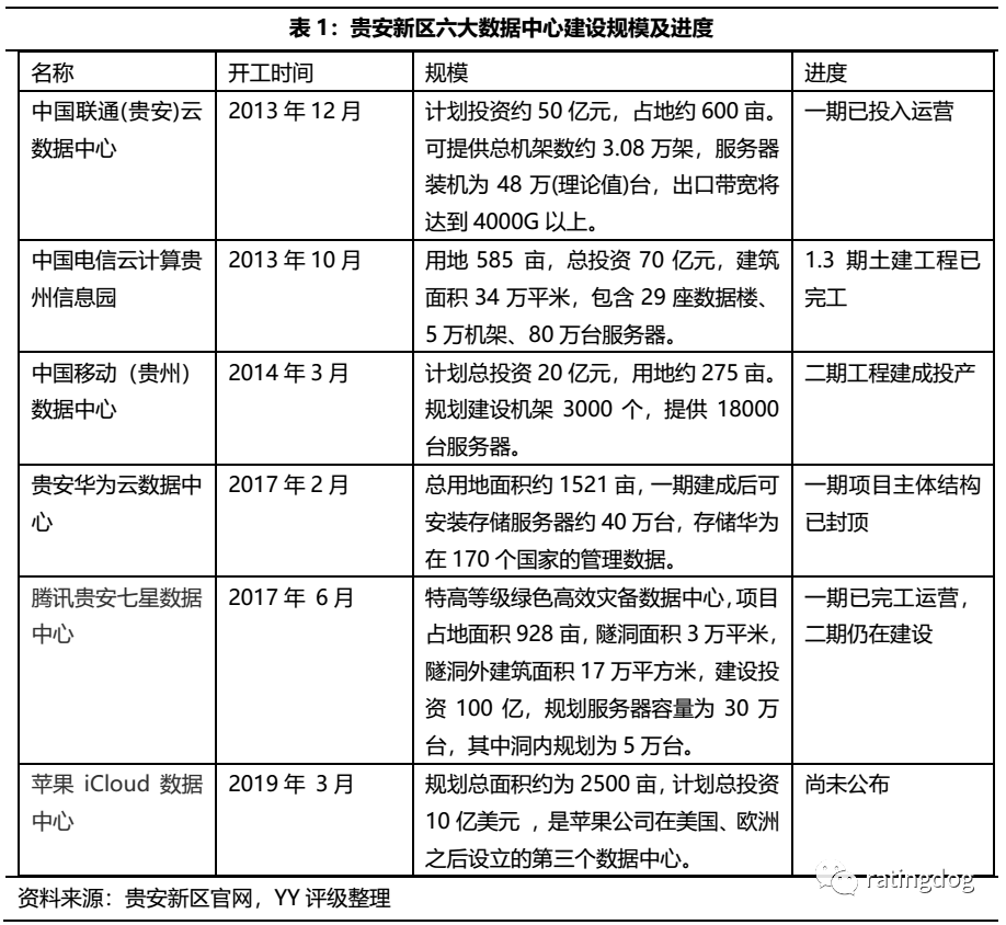 貴安新區目前重點項目有三大運營商超大型數據中心以及騰訊、華為、蘋果三大數據中心。