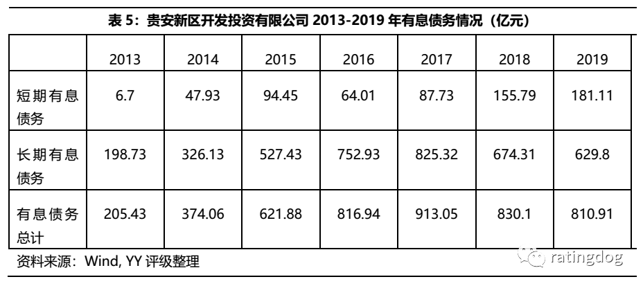 貴安新區目前有三家城投平臺,YY評級均為7/10,隱含評級更高,資質較弱。資產規模最大的貴安新區開發投資有限公司是貴安新區內唯一的開發主體,承擔新區基礎設施建設、產業園區建設、投融和產業發展的職責,截至2019年底總資產規模為2695.38億,有息債務為810.91億。其余兩家發債平臺的資產規模和有息債務規模均較小,其中貴州貴安建設集團有限公司為貴安新區開發投資有限公司的全資子公司,是貴安新區重要的基礎設施和公用事業建設主體,貴州貴安電子信息產業投資有限公司截至19年底總資產為282.79億,有息債務為36.61億,主要承擔貴安電子信息產業園的開發建設、投融資、產業發展、資產經營管理及招商引資等工作。