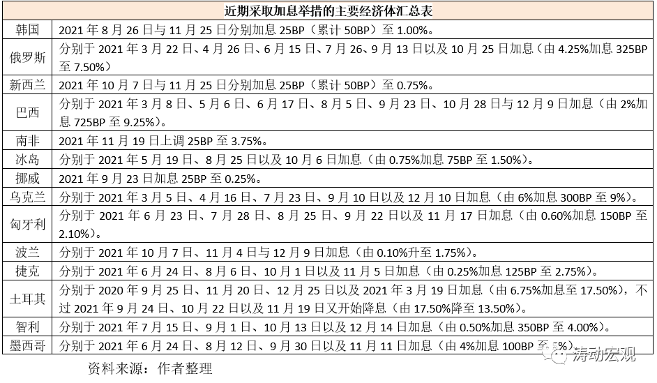 例如,2021年11月以來,已有韓國、新西蘭、巴西、南非、烏克蘭、匈牙利、波蘭、捷克、智利和墨西哥等經濟選擇加息,既包括發展中國家,也包括韓國和新西蘭等發達經濟體。