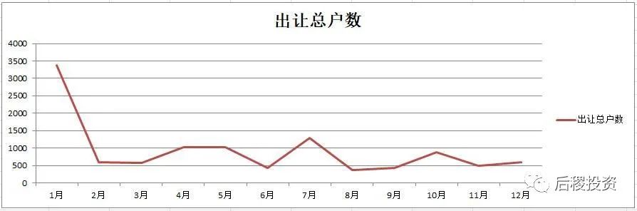 全年1月份出讓份額最高,這是各機(jī)構(gòu)在12月底沖業(yè)績,公告反映在1月份。其余時(shí)間月出讓次數(shù)區(qū)間中值為100次,上下浮動40戶以內(nèi),戶數(shù)中值為750戶,上下浮動250-300戶,金額中值為40億,上下浮動20億。