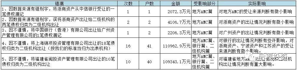在白皮書《銀行篇》發(fā)布后,有銀行業(yè)的前輩指出,我們商業(yè)銀行不良資產(chǎn)的總新增額,除去新增和出讓額外,還應(yīng)當(dāng)加上銀行自己核銷和清收的債權(quán)總額,對此我們表示認(rèn)同和感謝。但該數(shù)據(jù)取得較為困難,且跟債權(quán)轉(zhuǎn)讓市場關(guān)聯(lián)不大,故我們不再統(tǒng)計(jì)。前輩提出了一個(gè)統(tǒng)計(jì)方法:查一下全國各上市銀行的年報(bào)中的撥備當(dāng)年計(jì)提數(shù),加上年底撥備,減去年初撥備,基本上小于等于清收加核銷,但撥備回沖比較難統(tǒng)計(jì)。非上市銀行數(shù)據(jù)則難以獲取,故這樣也難做到完全統(tǒng)計(jì),但上市銀行數(shù)據(jù)仍舊有參考意義。感興趣的朋友可按該方法去自行核實(shí)。
