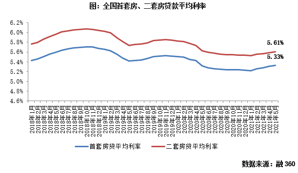與此同時,全國房貸平均利率迎來“四連漲”。數(shù)據(jù)顯示,全國房貸平均利率于2021年2月止跌回升,連續(xù)四個月處在穩(wěn)步上升通道,5月,全國首套房貸款平均利率5.33%,環(huán)比再上漲2BP,二套房貸款平均利率5.61%,環(huán)比上漲2BP。