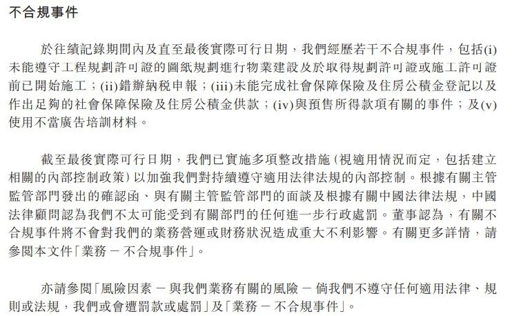 董事認為,有關不合規事件將不會對我們的業務營運或財務狀況造成重大不利影響。很多房企這方面都存在一些問題,杠桿地產客觀說,方直發展其實只是不例外。