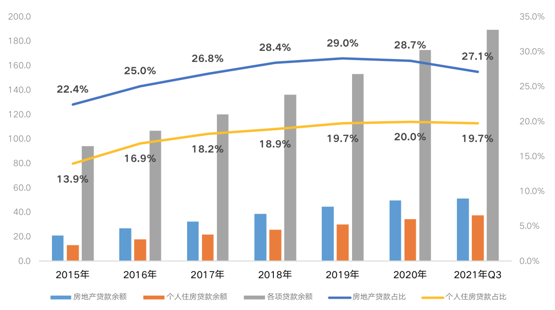 圖:2015年-2021年三季度房地產(chǎn)貸款余額、
