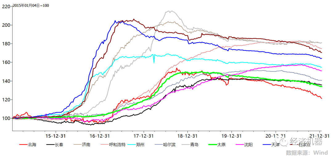 圖2、一線城市和部分新一線城市(南方為主)房價停漲,高位震蕩