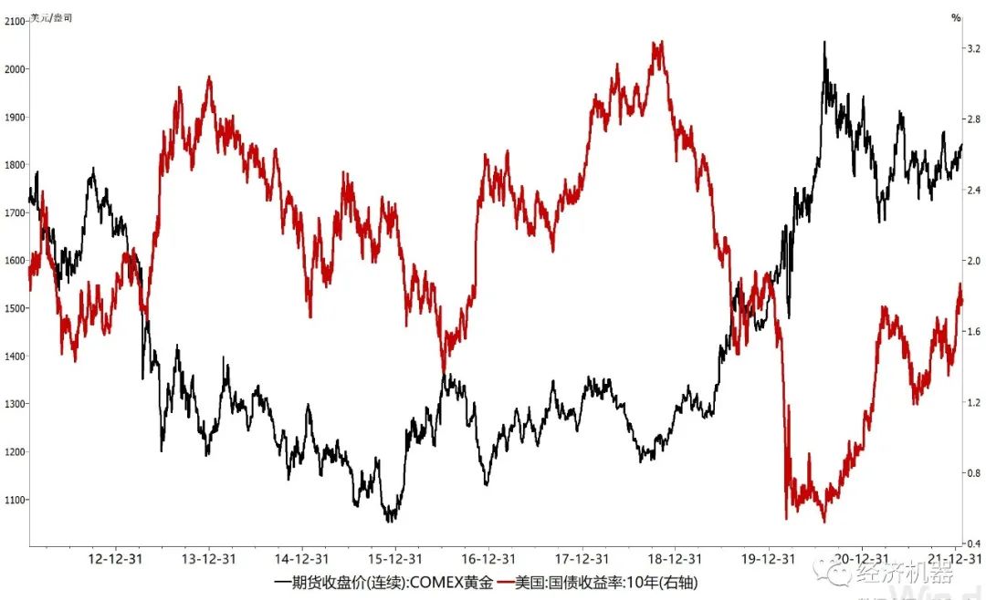2022年,黃金走向取決于加息與通脹誰跑的更快。1月以來,各期限美國國債名義收益率都有加速上漲的勢頭。美國10年期綜合抗通脹國債收益率也有抬頭跡象,表明實際利率有走高態勢。未來黃金價格取決于加息節奏,若實際利率上升滯后于通脹的速度、加息低于預期,黃金抗通脹屬性會推動金價保持強勢;若加息強度與節奏超市場預期,導致實際利率大幅上升,則黃金價格有快速回落可能。加息過快,超過了實體經濟承受能力,出現長短期利率期限倒掛等極端情況時,黃金或將再次迎來機會。