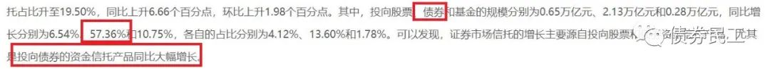 在此前中國(guó)信托業(yè)協(xié)會(huì)公布的2021年3季度末信托公司主要業(yè)務(wù)數(shù)據(jù)中,信托產(chǎn)品投向債券的規(guī)模為2.13萬(wàn)億元,同比增長(zhǎng)分別為57.36%!這個(gè)增長(zhǎng)速率高的有點(diǎn)嚇人。