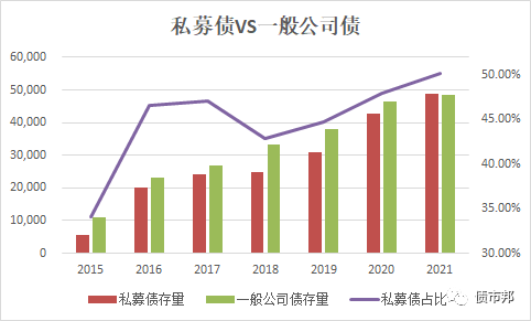 即便如此,依然擋不住逐利的市場行為,近年來私募債的占比一路攀升從,存量從2016年的2萬億規模上升到現在的4.8萬億。