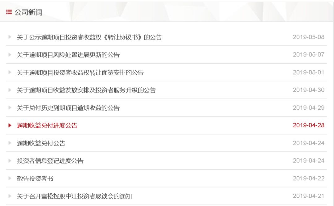本次轉讓的標的為違約項目的利息權利;轉讓后雪松控股將在7月22日之前按原合同約定收益率支付利息給投資者