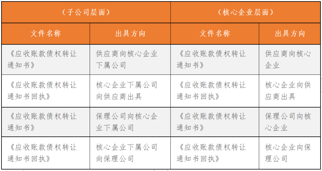 在普通供應鏈ABN項目中,供應商向保理公司轉讓應收賬款債權并最終將由保理公司出售予信托計劃涉及兩次債權轉讓:供應商轉讓給保理公司,保理公司轉讓給信托計劃。故對債務人核心企業下屬公司而言,涉及兩次債權轉讓通知和兩個債權轉讓回執,