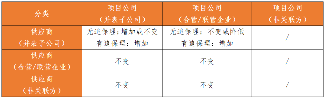 需要說明的是,一般項目公司的信用水平遠低于核心企業,風險敞口較大,項目公司是核心企業的合營/聯營企業的情況下,核心企業通過債務加入、差額補足的方式對項目公司進行增信,對核心企業信用水平可能產生一定的負面影響。