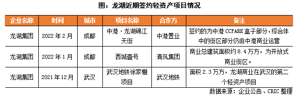 2021年3月龍湖發布“知輕重 有所為”官宣海報,宣布全面啟動輕資產模式,向購物中心提供涵蓋定位和設計咨詢、招商、運營管理、租戶管理、品牌輸出和消費者服務等全流程的支持。到2021年9月30日,龍湖簽約的首個輕資產管理輸出項目武漢范湖里特色商業街實現開業,該項目是龍湖和武漢地鐵集團簽約的TOD項目。