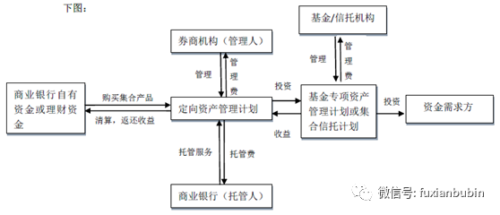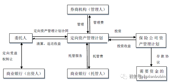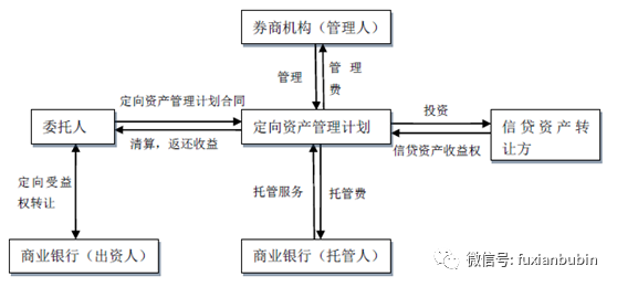 商業(yè)銀行理財資金或自有資金委托券商機構成立定向資產管理計劃,投資于存量信貸資產。業(yè)務原先主要是用于表內轉表外或調整信貸規(guī)模,業(yè)務流程如下圖: