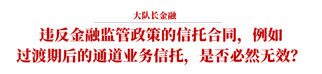 在絕大多數(shù)信托合同效力之爭(zhēng)的案例中,當(dāng)事人主張合同無(wú)效的理由主要是違反各類金融監(jiān)管規(guī)定。包括前述場(chǎng)外配資問(wèn)題、剛兌問(wèn)題,以及將要討論的信托通道業(yè)務(wù)效力問(wèn)題,其核心問(wèn)題都是,違反金融監(jiān)管政策的信托合同是否必然無(wú)效,其延伸問(wèn)題是,違反社會(huì)公共利益如何把握。