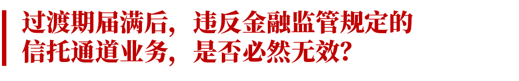 《九民紀(jì)要》第93條對(duì)通道業(yè)務(wù)的含義、效力,《資管新規(guī)》過(guò)渡期安排等進(jìn)行了明確。目前《資管新規(guī)》過(guò)渡期已延長(zhǎng)至2021年底。基于《九民紀(jì)要》的規(guī)定,在過(guò)渡期內(nèi)的通道業(yè)務(wù),如果不存在其他無(wú)效事由的,將被認(rèn)定為有效。那么,根據(jù)該條規(guī)定,是否可以得出過(guò)渡期之后的通道業(yè)務(wù),將必然被認(rèn)定為無(wú)效的結(jié)論。