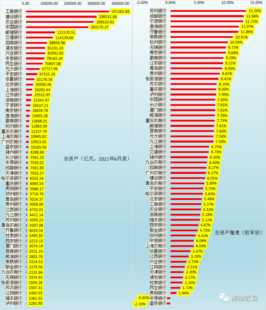 (二)7家銀行總資產增速超過兩位數,盛京與中原等2家銀行縮表