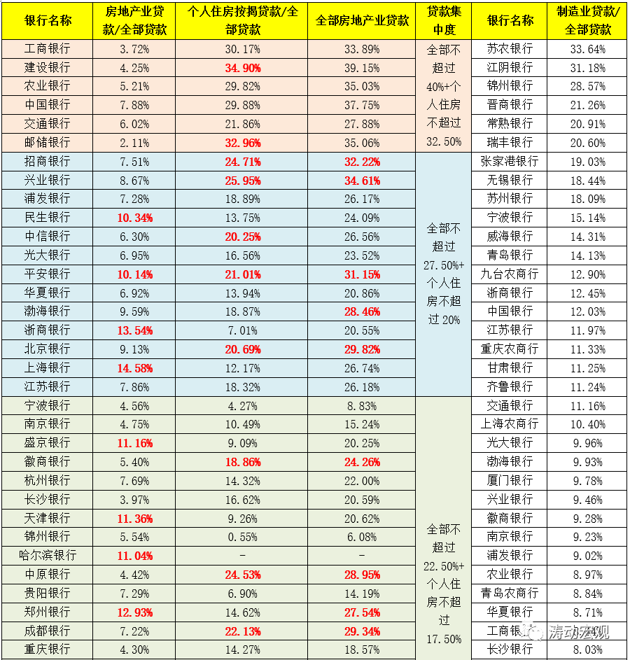 2、從制造業貸款占比來看,有21家銀行的制造業貸款占比超過10%,其中蘇農銀行與江陰銀行最高,分別為3.64%和31.18%。西安銀行、上海銀行、平安銀行、瀘州銀行、哈爾濱銀行、貴州銀行的制造業貸款占比最低,均低于5%。