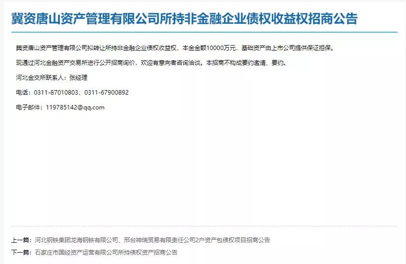 河北省資產管理有限公司 | 綜合性收購處置:在盡職調查基礎上進行資產定價并確定收購價格,在資產收購后,通過對資產進行分類管理、經營和處置,實現收益或資產增值的業務。 結構性收購處置:收購前確定后期資產管理、經營和處置方式,并以此確定項目主要交易結構的業務。 |