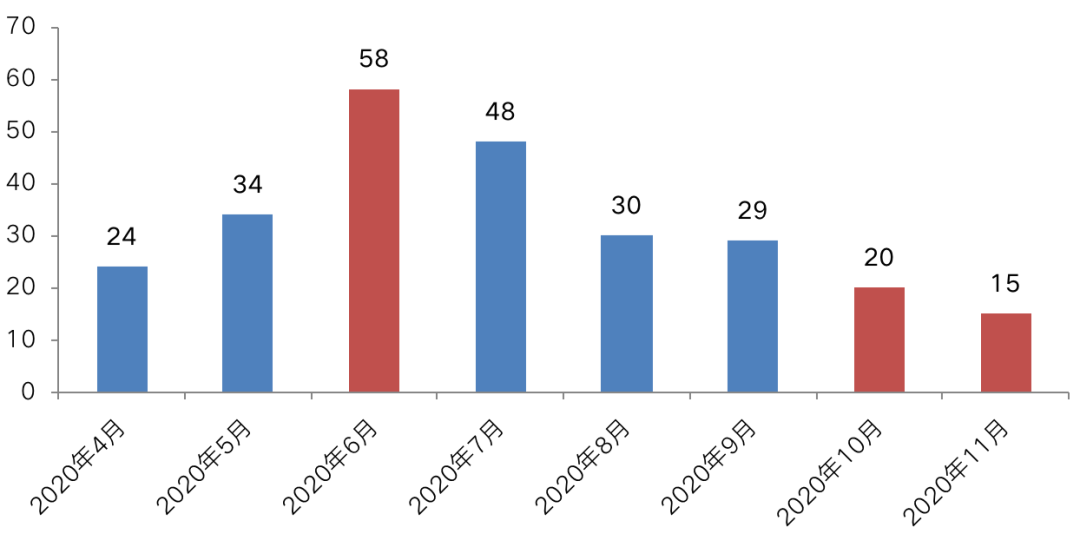 整體來看,自10月以來土地熱度在“三條紅線”影響下明顯降溫,溢價率僅有12.2%,創下二季度以來新低,11月,市場熱度依舊保持低位。