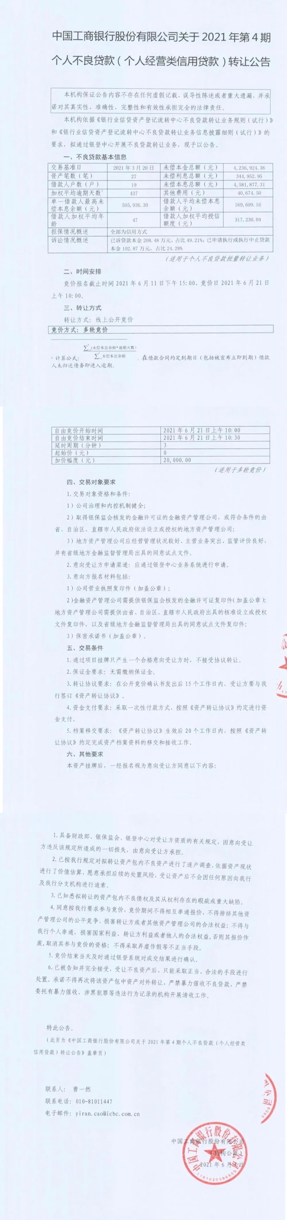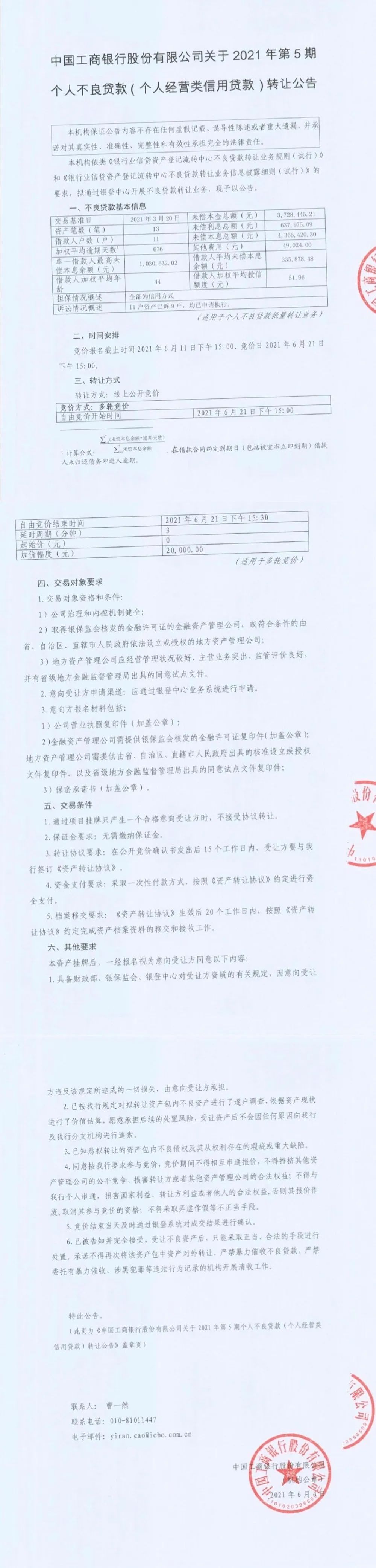 附工行2021年第4期、第5期個人不良貸款轉(zhuǎn)讓公告: