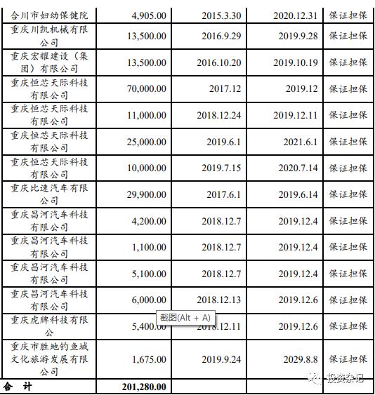 通過查詢工商信息,除了婦幼保健院和重慶勝地釣魚城外,該平臺主要是對重慶川凱機械(管敬國持股98%,趙小玲持股2%)、重慶宏耀建設(丁航持股65.8%,龔梅鋒持股34.2%)、重慶恒芯天際(該平臺參股,實際控制人為自然人的民企)、重慶比速汽車(該平臺參股,實際控制人是個人的民企)、重慶昌河汽車(該平臺參股,大股東是北汽,實際控制人是北京國資委)、重慶虎牌科技(莫新輝持股90%,易紅梅持股10%)進行擔保。除重慶昌河汽車是公司參股的國有企業外,其余均是純自然人控制的民企或者是公司參股的民營企業。這些企業均是該平臺業務范圍內的一個工業園區內的企業,公司對自己園區內的企業(主要是對自己有參股的企業恒芯天際、比速汽車、昌河汽車)進行擔保,這類擔保與一般的民企擔保可能存在差異,一個是對于參股的企業,平臺有處于股東的角色進行擔保的意味;二是可能有招商引資、扶持企業的含義;三是公司對被擔保企業的經營情況更為了解,擔保期限也控制在1年,有利于風險把控;四是政府可能會有一定的政策支持。很多園區平臺都存在對園區企業進行擔保的情況,對于這類擔保,一方面要了解被擔保企業的經營情況,另一方面需要了解平臺公司是否有相應的風險緩釋措施,政府是否有相應的支持計劃。