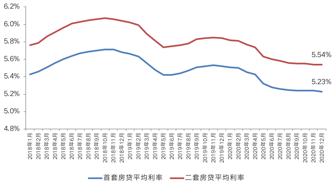 圖: 2018年1月-2020年12月全國(guó)首套、