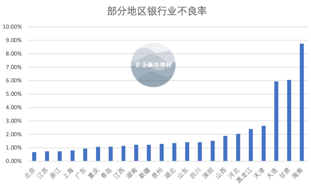 在披露了不良率數(shù)據(jù)的區(qū)域里,不良率最高的是海南,高達8.75%;其次是甘肅、大連,分別為6.06%、5.95%。
