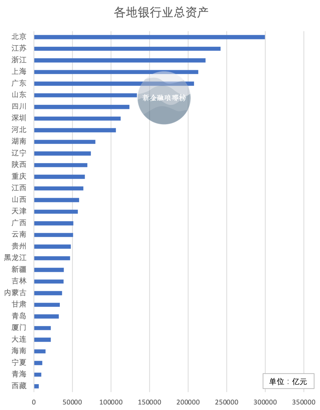 青海、西藏的銀行業(yè)總資產(chǎn)不到1萬億,其中西藏僅為6352億元;寧夏、海南也不到2萬億。