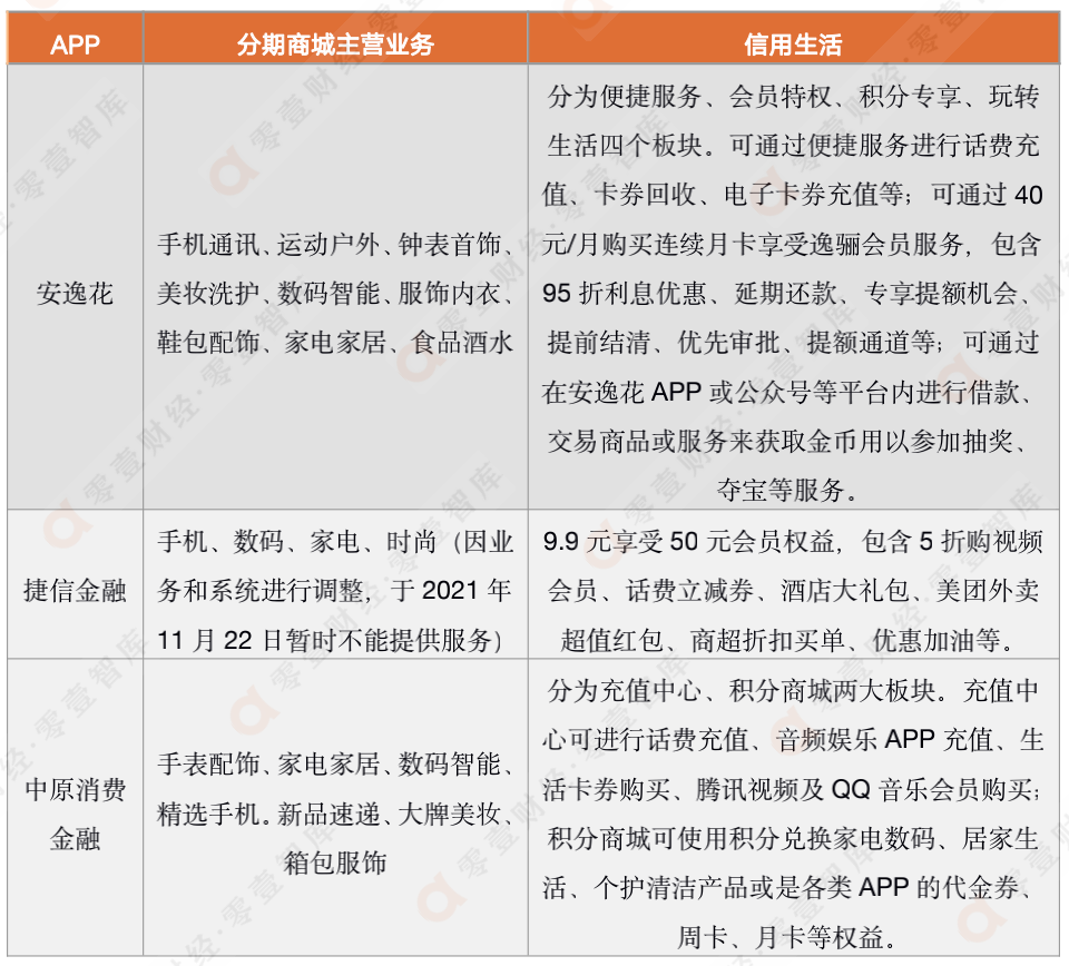 表 4:消費(fèi)金融公司APP分期商城業(yè)務(wù)情況