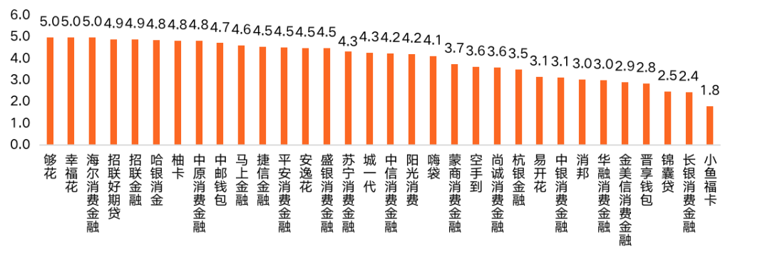 圖 4:2021年前三季度消費(fèi)金融公司APP日均活躍用戶(hù)評(píng)分情況