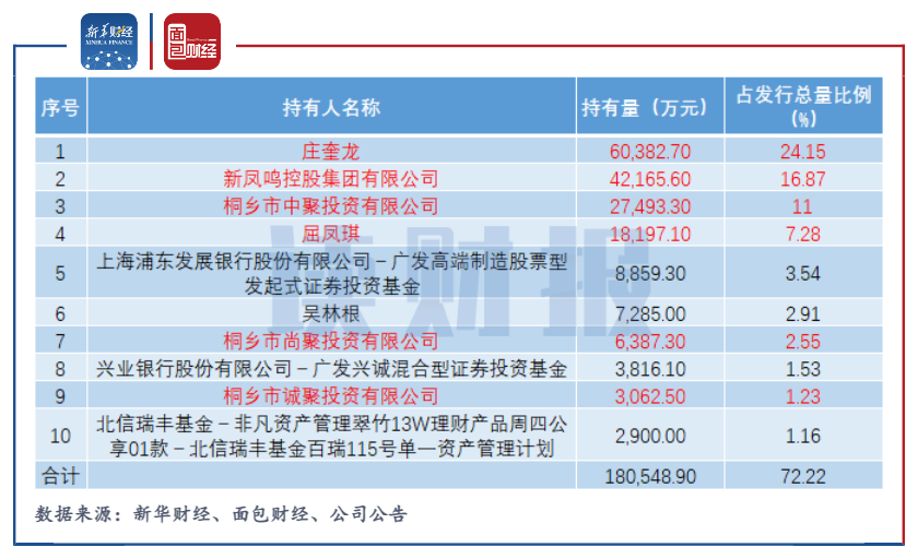 值得一提的是,早在2018年,公司在發行上一支可轉債(以下簡稱“新鳳轉債”)時莊奎龍、恒聚投資、中聚投資共計配售730萬張。在2018年7月23日至9月21日期間莊奎龍、恒聚投資、中聚投資合計減持新鳳轉債430.6萬張,按照期間交易均價102.89元/張估算,獲利近1244萬元。