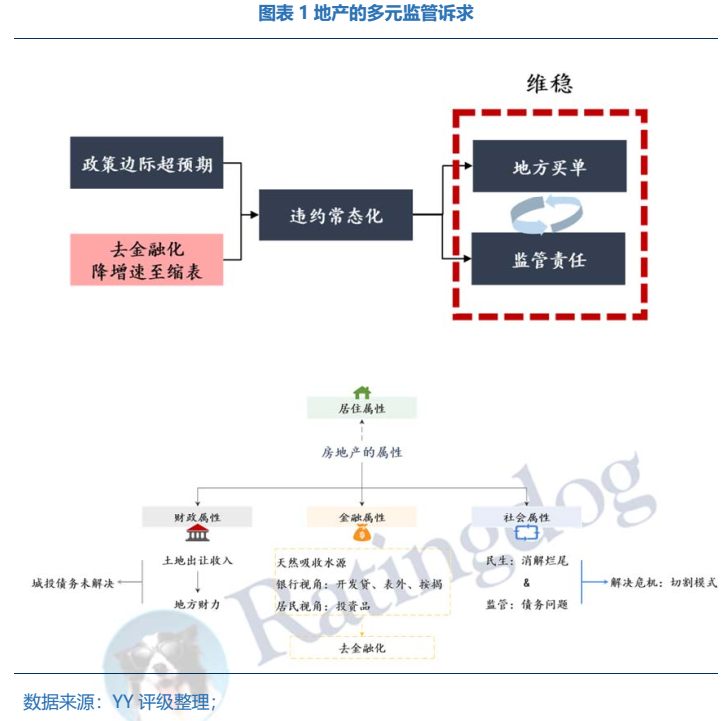 在21年圣誕節(jié)前夕的地產(chǎn)黑夜與黎明路演中我們曾說道,這一輪大周期的中樞為政策的去金融化,其造成的成本外溢和市場頻繁違約將促使監(jiān)管機構(gòu)間的執(zhí)行與糾偏,從而使得市場面臨持續(xù)性的短中期波動。而如何看待機構(gòu)間的立場與政策解讀成為也將成為后續(xù)解讀短期擾動因素的主要工具。
