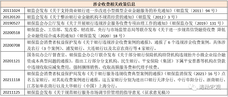 諸多跡象表明,銀保監會近年來對各類亂收費、推高企業綜合融資成本的行為給予了較高程度的關注,并正強化對金融機構收費行為的監管,如銀保監會官網多次通報涉企收費案例以及2021年11月25日銀保監會發布《關于規范銀行服務市場調節價管理的指導意見(征求意見稿)》等,預計后續關于涉企收費問題將迎來新一輪專項檢查,值得關注。這里面需要遵循的原則包括有沒有提供收費服務的能力(如財顧咨詢費的收取)、提供的服務與收費是否質價相符等兩類。