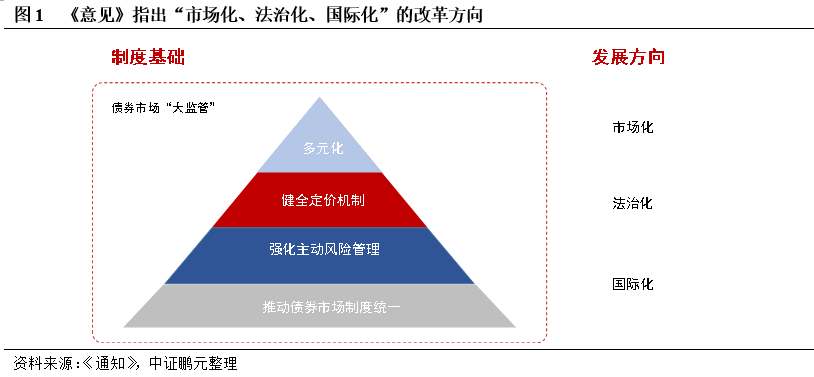 法律法規是實現市場有序發展的基礎,由于我國債券市場發展時間較短,相關制度有待完善。隨著信用風險的逐步顯露和債券市場的對外開放需求,推動法治統一成為債券市場健康發展的基礎。根據《意見》,債券市場的法律安排將按照“分類趨同、規則統一”的原則進行,即根據發行方式,分類監管。第一,統一法律基礎。《意見》頒布前,非金融企業債務融資工具參照《人民銀行法》進行管理,此次明確《公司法》和《證券法》是公司信用類債券市場的基礎法律,實現了全市場公司信用類債券法律標準的統一。第二,統一司法處置標準。《意見》指出,在民商事審判工作中,對企業債券、非金融企業債務融資工具、公司債券適用相同的法律標準,第三,明確統一執法權,由國務院證券監督管理機構依法對違法違規行為進行認定和處罰。第四,將逐步統一債券市場各類制度和執行標準,包括債券發行交易、信息披露、信用評級、投資者適當性、風險管理等。其中,明確對非公開發行公司信用類債券的各項制度進行統一規范,以降低信息不對稱帶來的投資者利益損失。