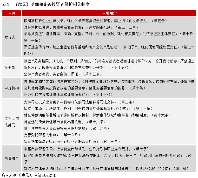 隨著債券風險的顯露,相關制度缺失帶來的投資者保護缺失問題亟待解決。我國債券市場長期處于分割狀態,多頭監管導致市場信息不對稱、債券市場流動性受限等問題,同時,“剛兌”思想使得發行人和投資者未能建立完善的風險識別、評估和處置制度,市場發行、交易方式和主體結構相對單一,投資者保護制度未受到足夠重視。近年來,經濟下行壓力加大、貿易摩擦持續、新冠疫情突發等負面事件的影響,債券風險暴露頻率提升、覆蓋主體范圍不斷擴大。2019年以來,為促進債券市場健康發展,相關政策逐步推出,包括統一監管和執法、銀行間市場和交易所市場互聯互通、統一信息披露、完善司法處置等,但各政策存在一定的不足,《意見》在前期政策基礎上,進行統一和補充,形成較為明確的指導性文件。